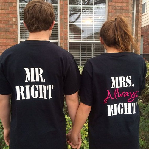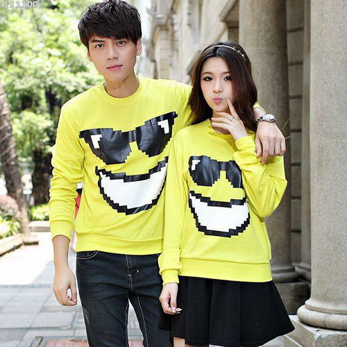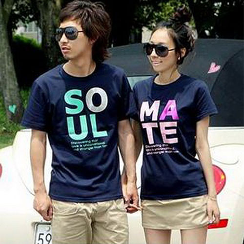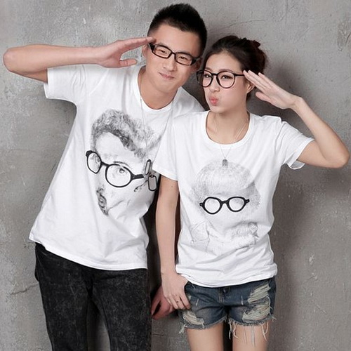 Orang yang jatuh cinta tidak ragu untuk menunjukkan perasaannya pada pasangannya. Mereka bahkan bangga karena saling memiliki dan akan menunjukkan pada orang di sekitarnya tidak hanya melalui sikap tetapi juga melalui pakaian. Ada beberapa pasangan yang suka memakai pakaian yang serasi dalam hal warna dan desain. Tetapi yang lain lebih suka memakai kaos bertuliskan kata-kata lucu dengan desain yang berhubungan dengan cinta.